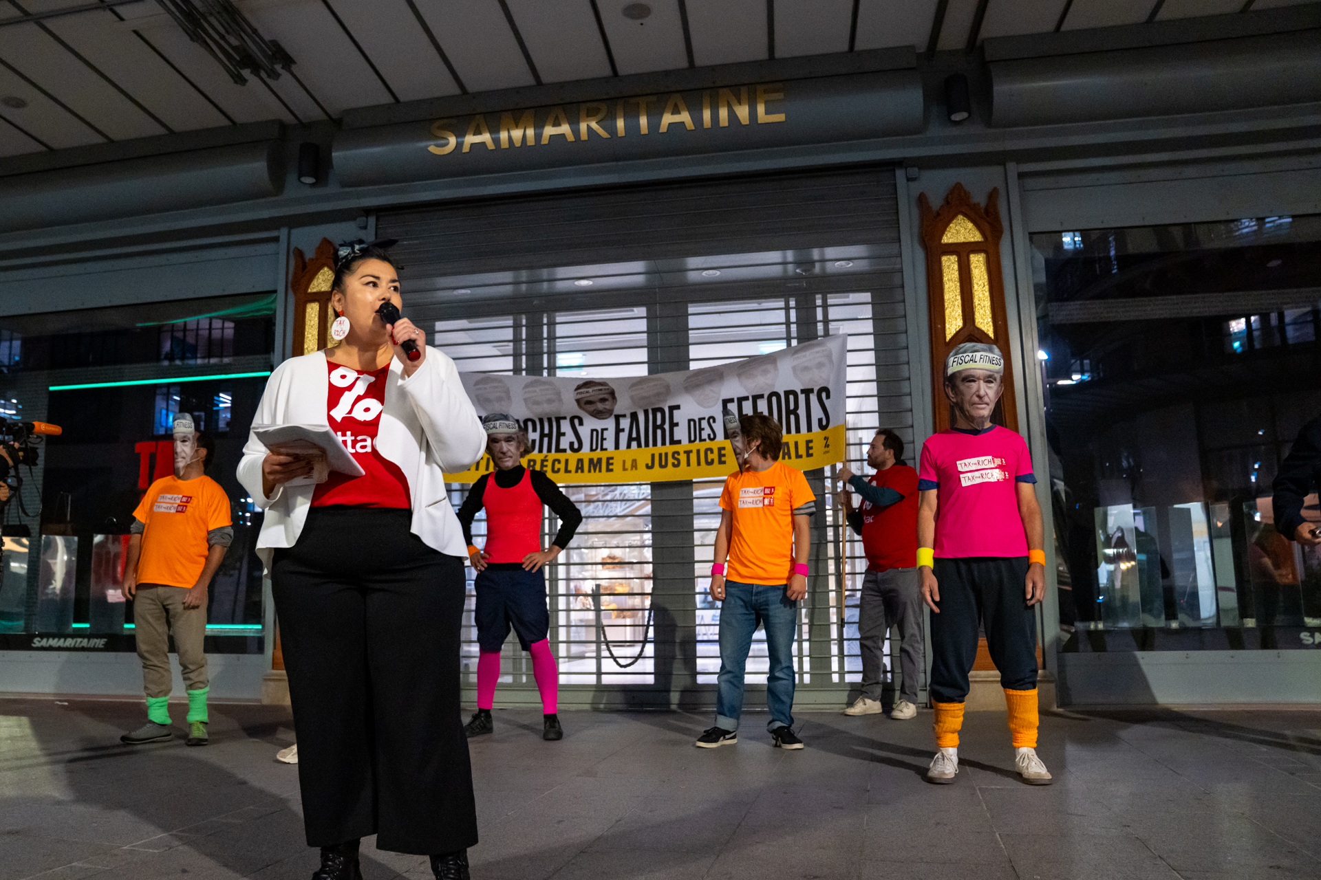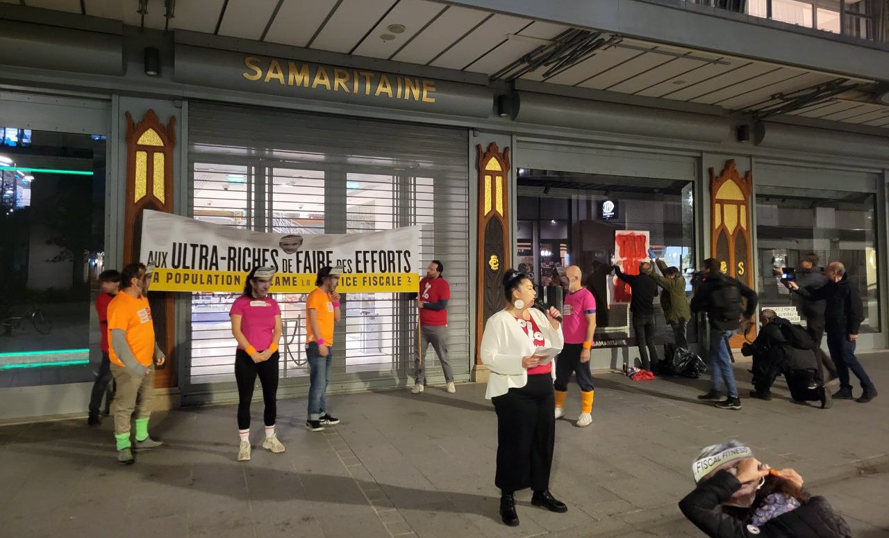 ACTION EN COURS 🔴 Une quinzaine d’activistes d’Attac sont devant la Samaritaine, chez Bernard Arnault, pour dénoncer les privilèges fiscaux des ultra-riches et des entreprises multinationales !