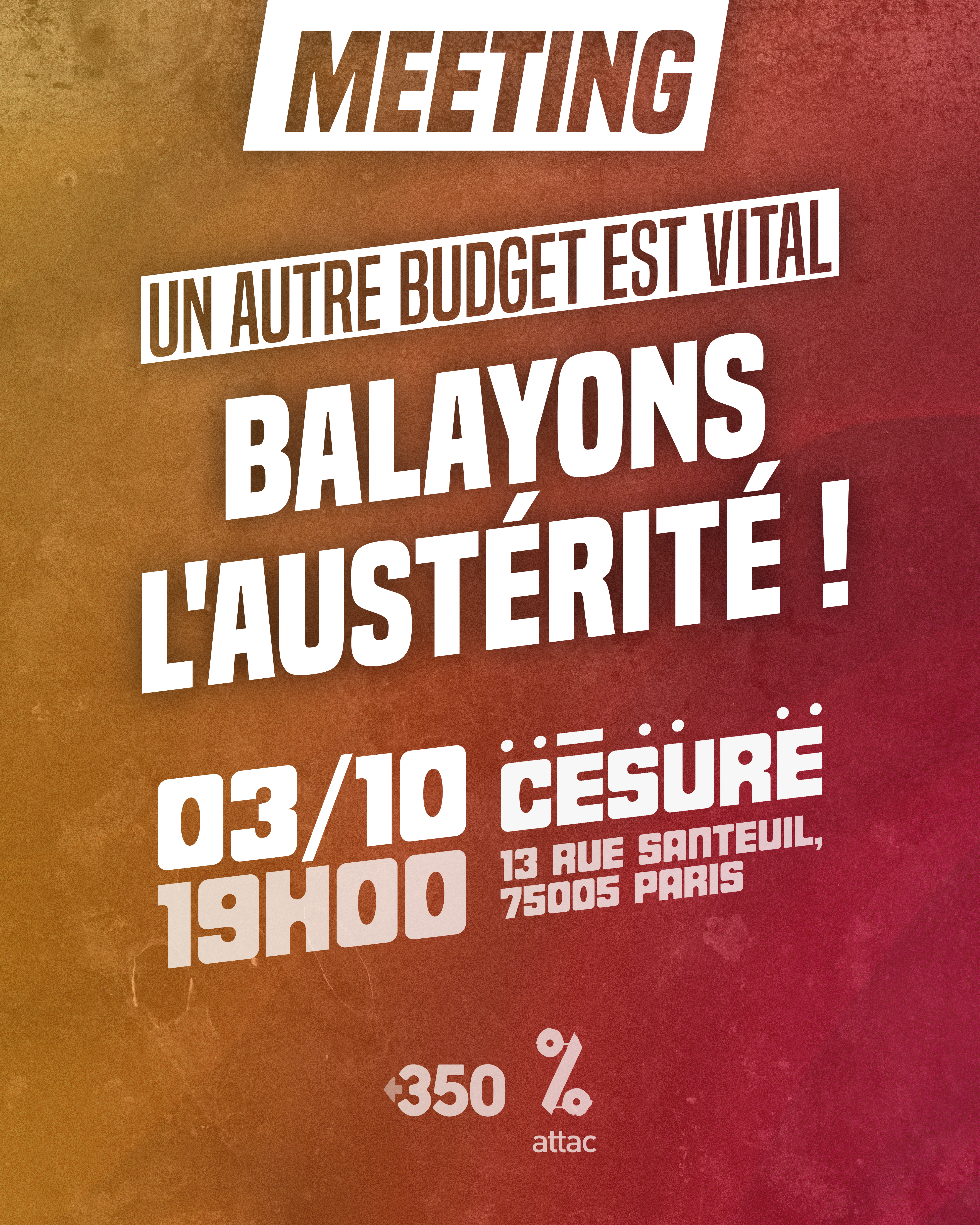 🗓️ On vous donne RDV le 3 octobre à 19h à Césure pour débattre des enjeux du budget 2026 et construire des alternatives.
